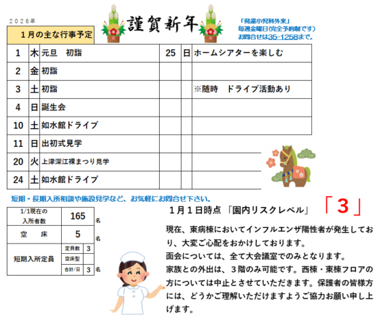穏やかな新年を利用者様とともにお迎えする事ができました。今年一年、どうぞよろしくお願い申し上げます。