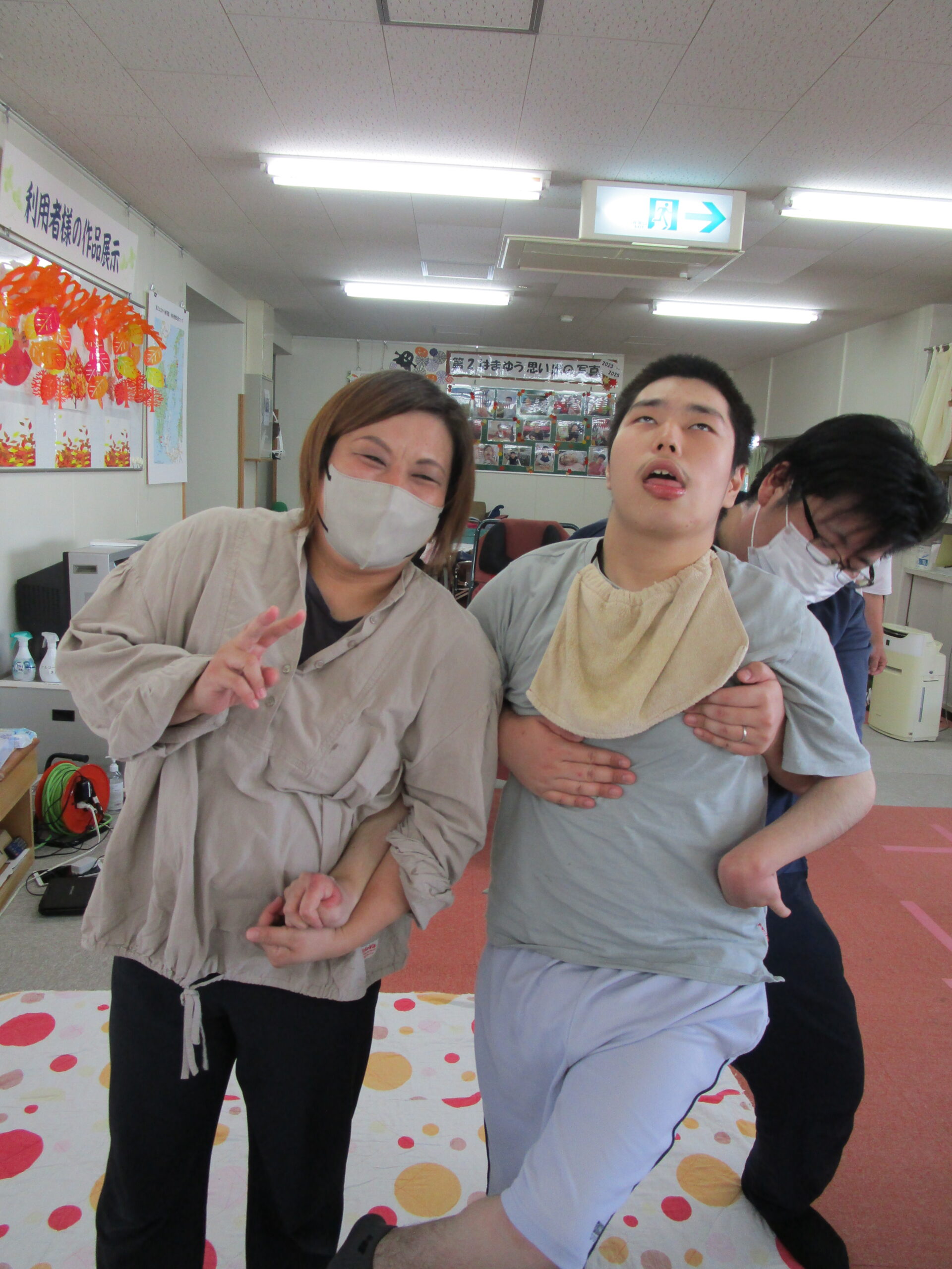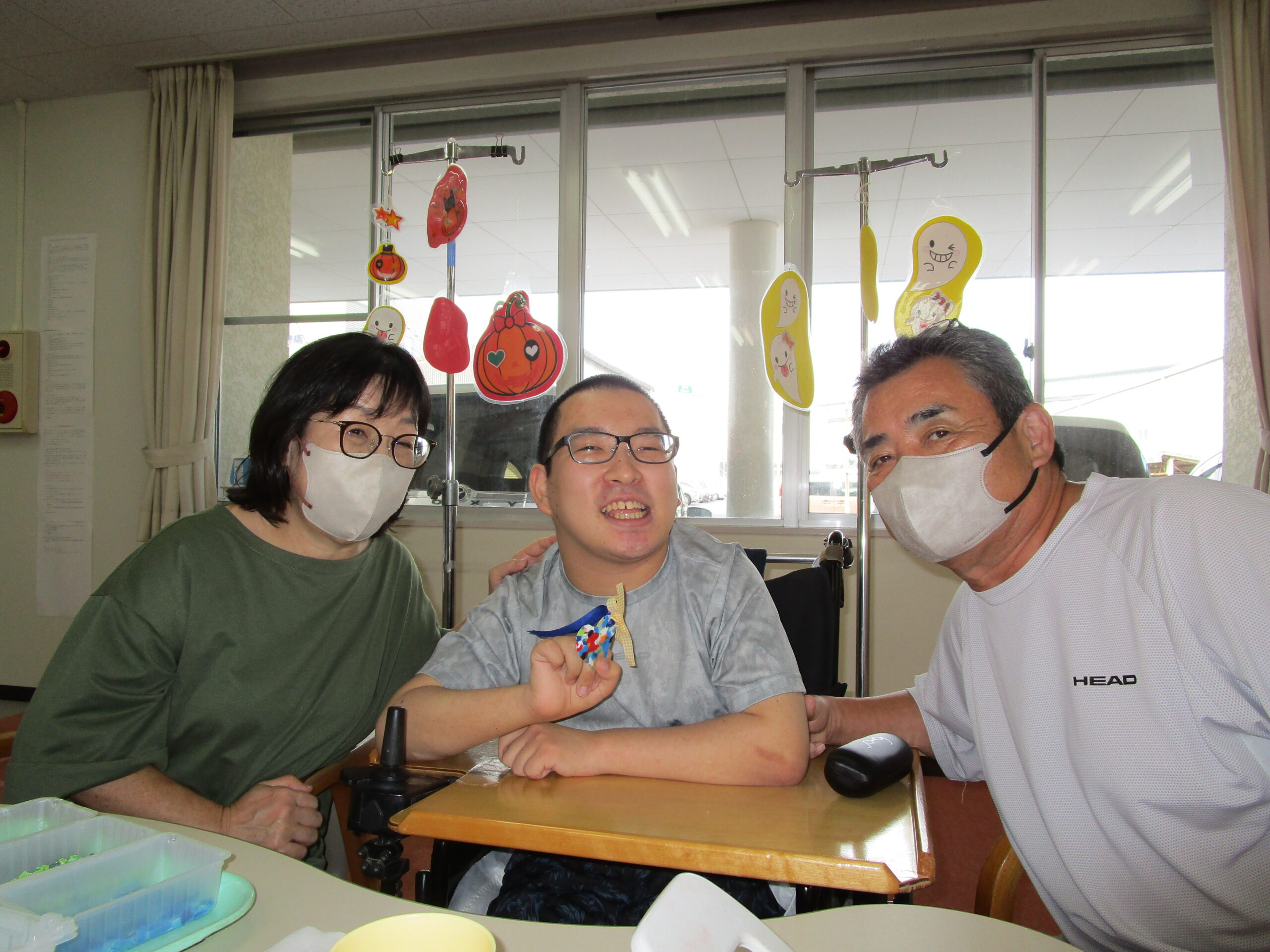 普段の支援の様子や利用者様の頑張りを見ていただき、また、食事やリハビリなどについて意見を交換しました。ご家族様の姿を見ると自然と笑顔になられ、とても良い機会が持てました!