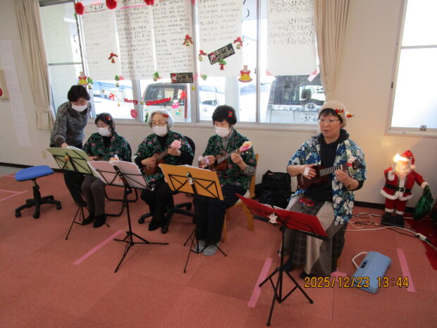 今年はエコーの会(ボランティア)とウクレレ教室のみなさんが来園されて、演奏会を開いてくださいました!とても賑やかで楽しいクリスマスになりました!